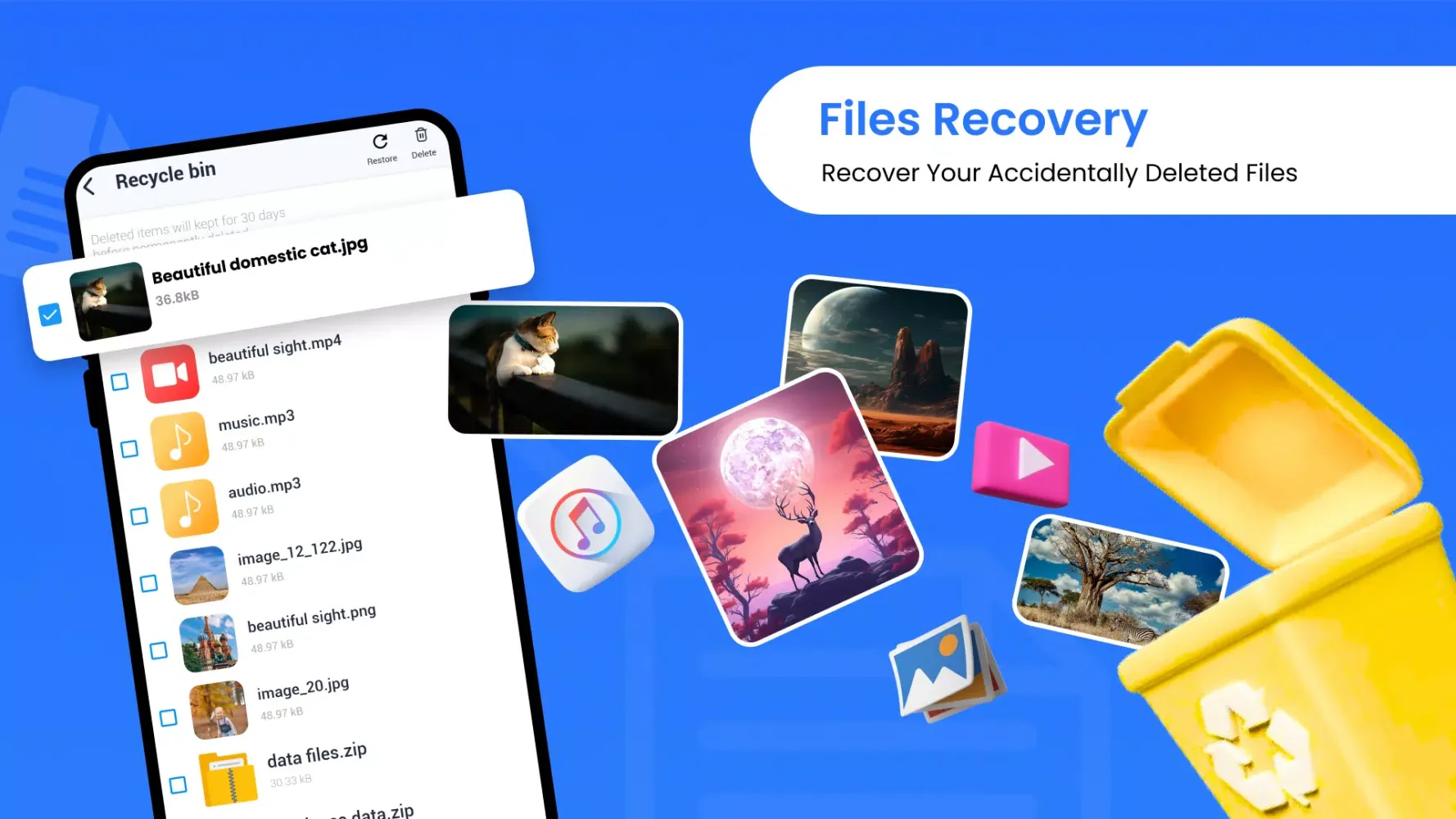 All your data is managed in one place, enabling you to perform a variety of operations including viewing, managing, editing, saving, removing, and restoring files. The Easy File Manager & Organizer streamlines your workflow, ensuring that you have full control over your digital assets.