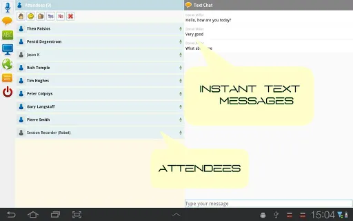 - The attendees panel enables users to see who else is attending the meeting and what they are doing.