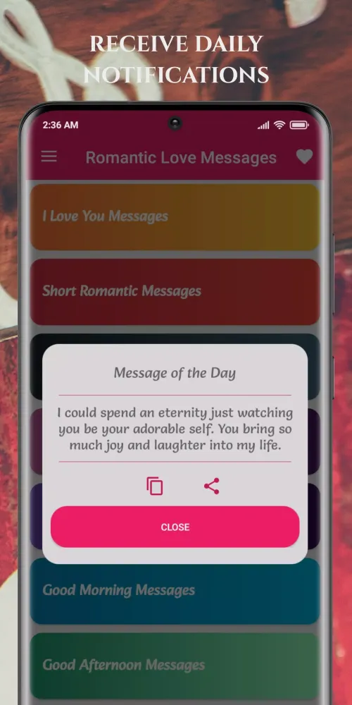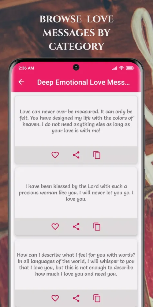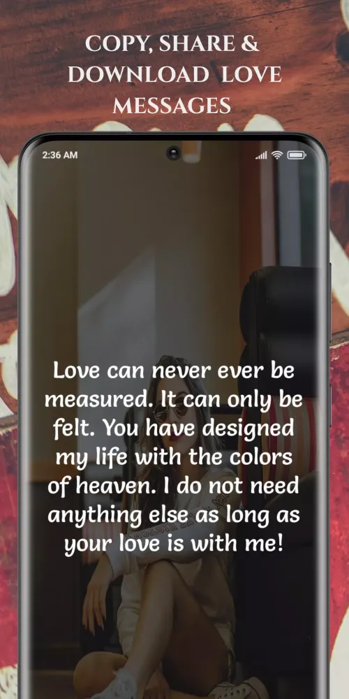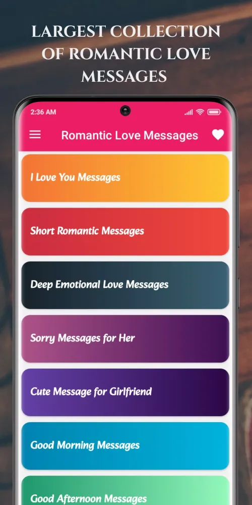 The app also understands that love comes in many forms and moods. That’s why it offers a diverse range of categories to suit different occasions. Need a message for your first date? Check. Want to say sorry after a disagreement? Got it. There’s even a section for missing someone far away or celebrating an anniversary. Each category is thoughtfully designed to ensure you always have the right words at your fingertips.