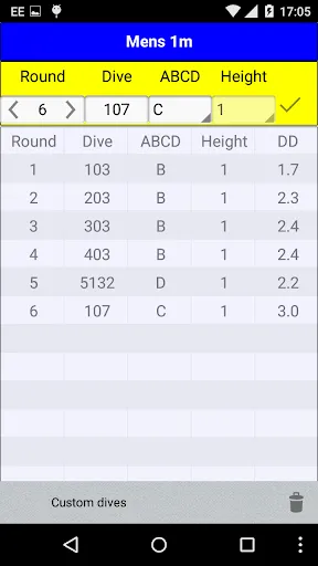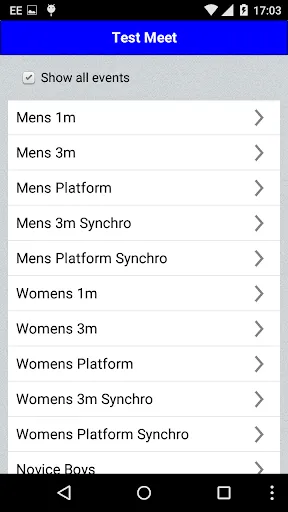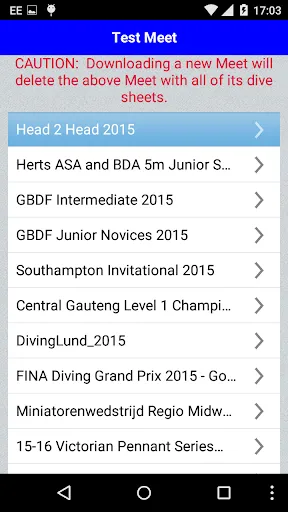 * view the list of available diving Meets and download the one you will be competing in