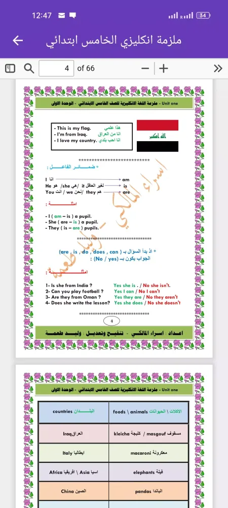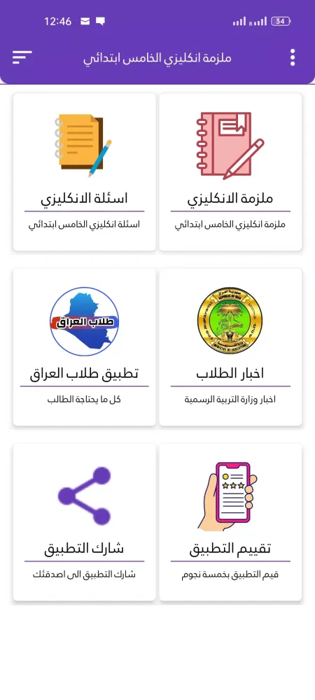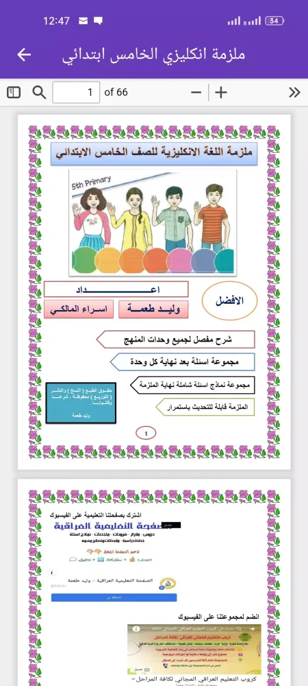 Description of the Application "ملزمة انكليزي الخامس ابتدائي"