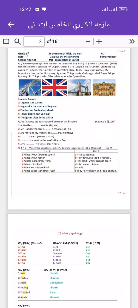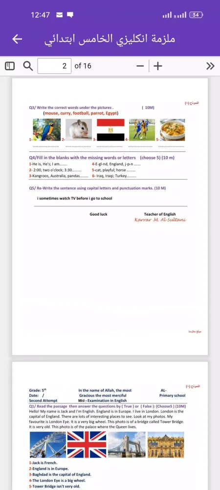 About ملزمة انكليزي الخامس ابتدائي