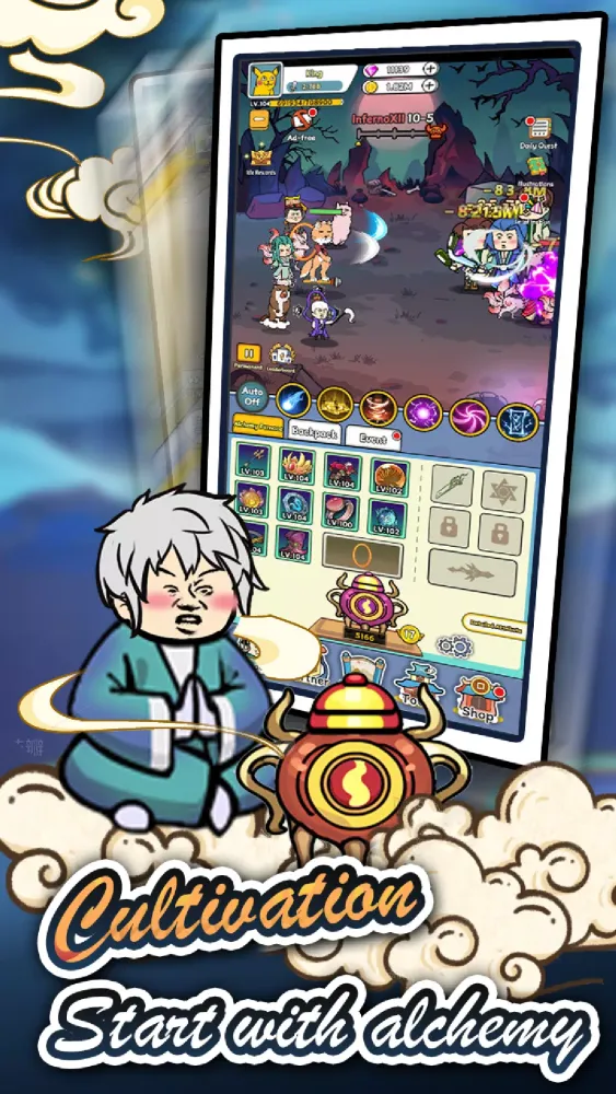 Upgrade alchemy furnaces, each a testament to your skill and dedication. Gather resources effortlessly as your hero engages in continuous battles, enhancing your arsenal with powerful weapons, skills, and partners. Dive into a world where every action, no matter how small, contributes to your grand quest for mastery.