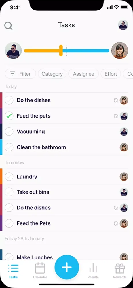 The app uses infographics to display the balance of completed tasks, making it simple to see who is contributing their fair share. This visual representation helps maintain transparency and fairness among all household members.