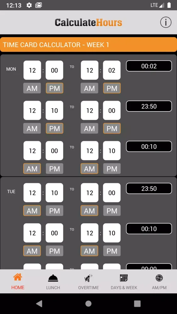 Overtime Calculation: Calculate overtime accurately based on daily or weekly thresholds. You can set custom overtime hours and choose from different multipliers (1.5x, 1.75x, or 2x) for overtime pay.