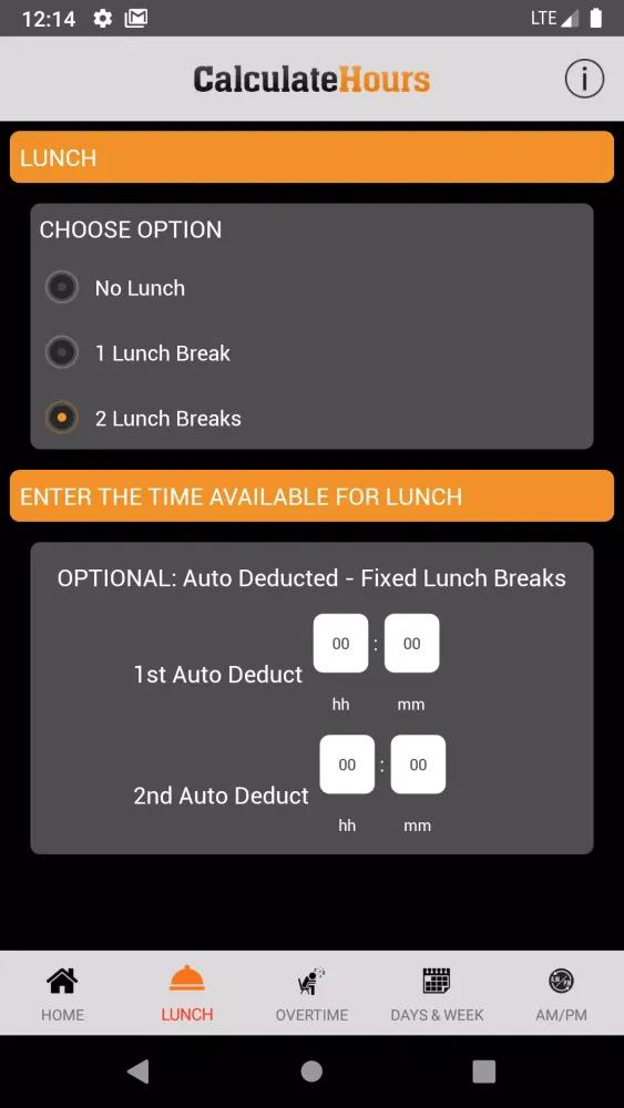 Lunch Breaks: Easily manage one or two lunch breaks by adding additional login lines. Alternatively, you can specify a fixed duration (e.g., 15 minutes, 30 minutes) for automatic deduction of lunch time.