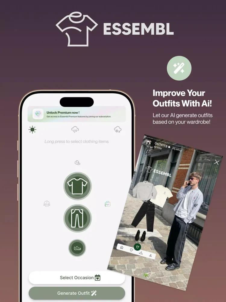 Feeling indecisive about what to wear? Let Essembl take the guesswork out of your outfit choices. By considering local weather conditions, event types, and your personal preferences, Essembl suggests outfits tailored just for you. Whether it's a casual weekend brunch or a formal evening gala, Essembl ensures you dress smartly and confidently every single day.