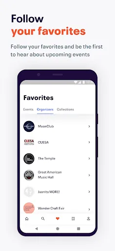 Discover upcoming events near you and get personalized recommendations. Stay up on the latest for popular events like concerts, festivals, yoga classes, holiday events on New Year’s Eve or Halloween and networking events. Find something fun to hit up by date, time and location. Buy tix and keep ‘em handy on your mobile device to make check-in nice and easy. Ready to explore?