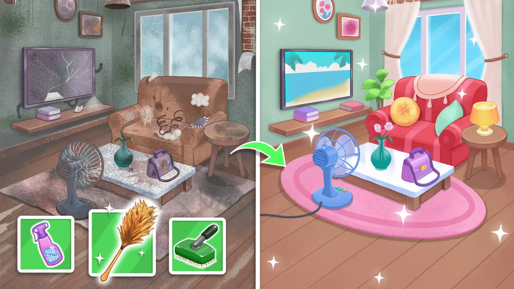 - Diverse Rooms: Tackle different rooms, each with unique challenges and cleaning tasks.