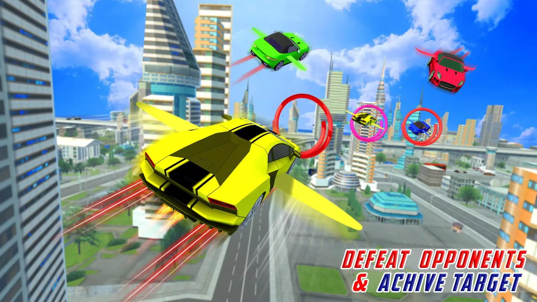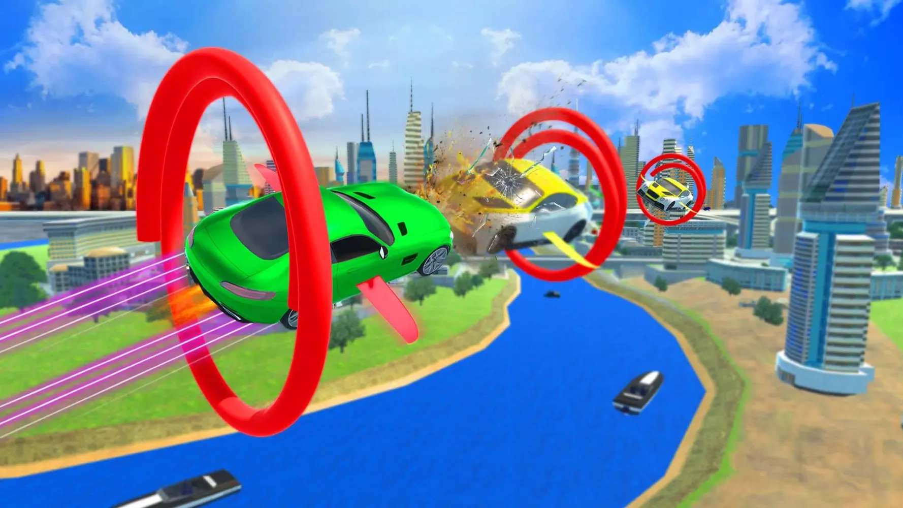 As you embark on your journey in Flying Car Games Car Flight, you'll encounter various challenges and rewards. Collect flying rings scattered throughout the city to reach your destination, each ring symbolizing progress and achievement. The game's advanced physics engine ensures that every move feels authentic, from the roar of the engine to the rush of wind during flight.
