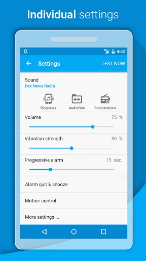 In this alarm clock, some settings are pre-defined in the free version.