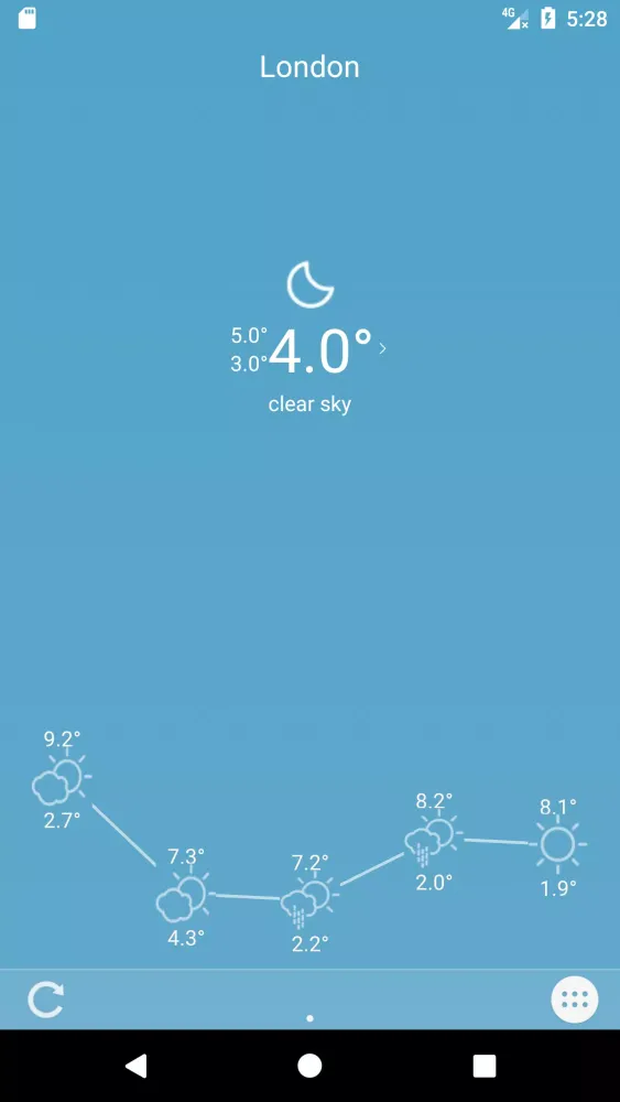 The app provides a 5-day weather forecast displayed with intuitive line graphs, making it simple and quick to understand the upcoming weather trends. Whether you're planning a trip or just want to know what to expect, POPWeather has got you covered.