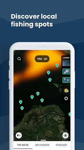 Customize your map. Whether you’re fishing for bass, trout, catfish or saltwater fish, you can filter the Fishbrain map to find the best spots.