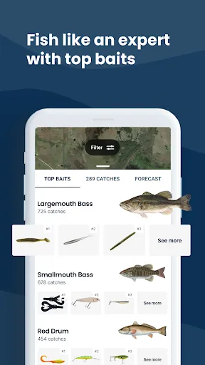 See which baits & lures are catching the most fish with “Top Baits” recommendations for your area