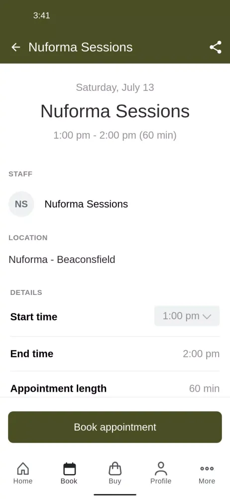 With Nuforma, you can effortlessly view class schedules, sign up for sessions, and stay updated on ongoing promotions. The app provides you with all the necessary details about the studio's location and contact information, making it convenient for you to get in touch whenever needed. Additionally, you can explore our social media pages by clicking through the links provided within the app.