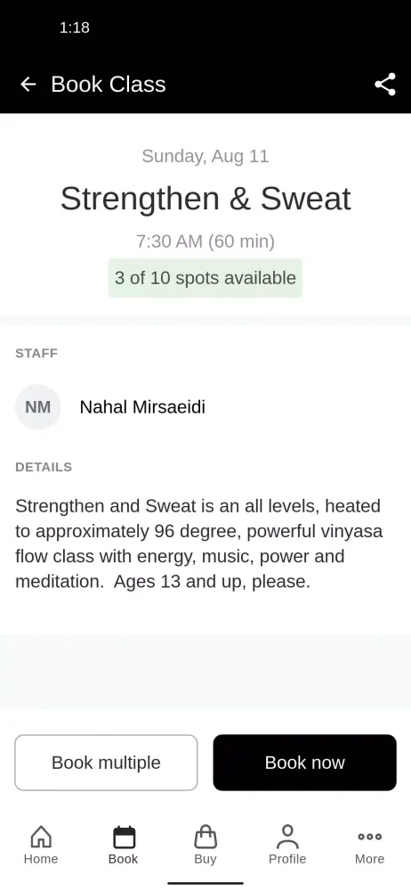 Beyond just managing your classes, the app offers a range of convenient features designed to enhance your yoga journey. You can easily view and purchase ongoing promotions, ensuring you never miss out on exclusive deals. The app also provides you with all the necessary information about the studio's location and contact details, making it easier than ever to get in touch or find your way there. Additionally, you can seamlessly navigate to our social media pages to stay connected and engaged with the community.