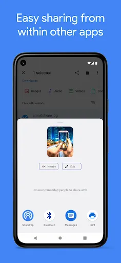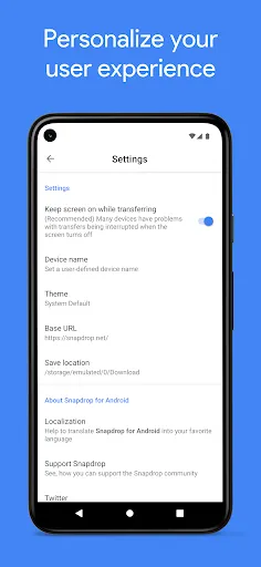 Snapdrop & PairDrop for Android is an Android™ client for the free and open source local file sharing solutions https://snapdrop.net/ and https://pairdrop.net/.
