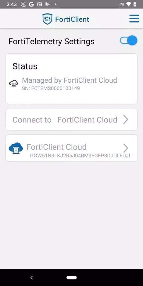 The primary function of FortiClient is to offer robust endpoint security while providing visibility into the broader Fortinet ecosystem. Whether you're working remotely or accessing resources within your organization, this app ensures secure connectivity through its versatile IPsec or SSL VPN capabilities. By establishing a trusted connection between your Android device and FortiGate, all data transmitted from your device is encrypted, ensuring privacy and integrity during transit.