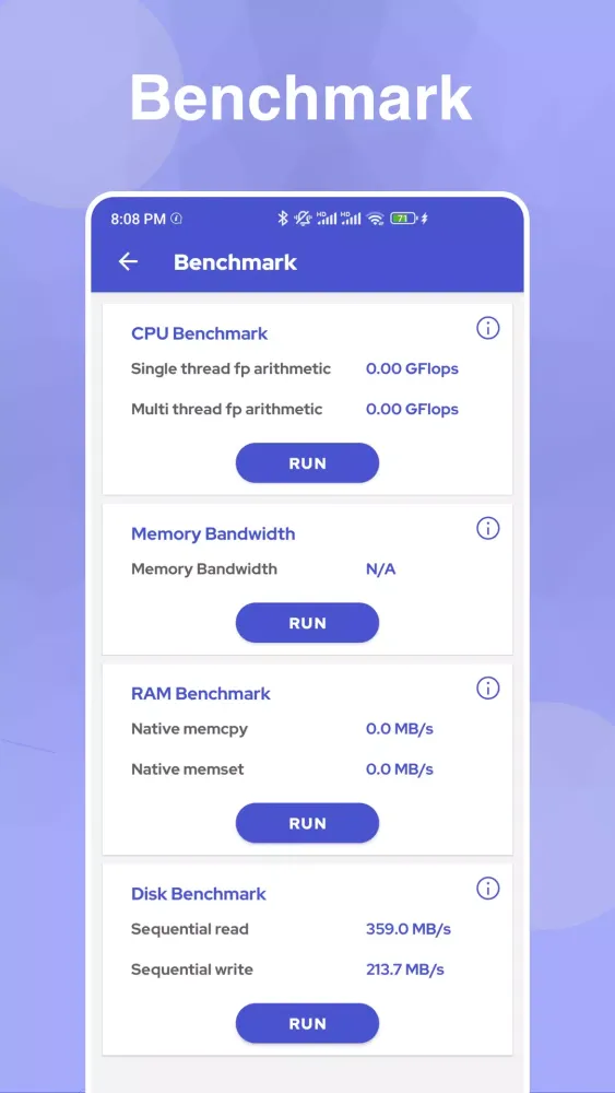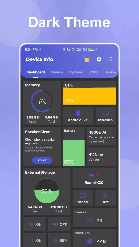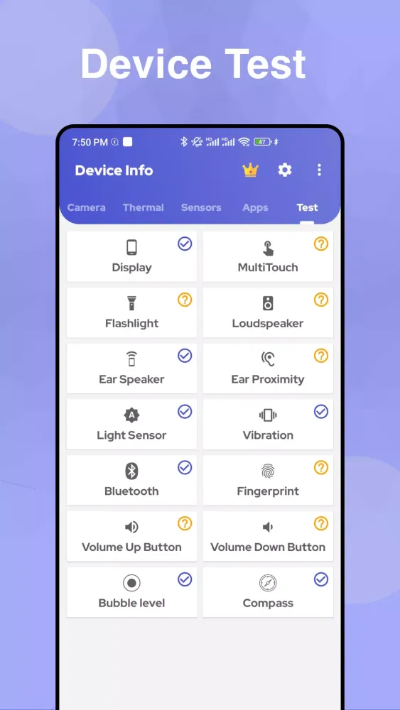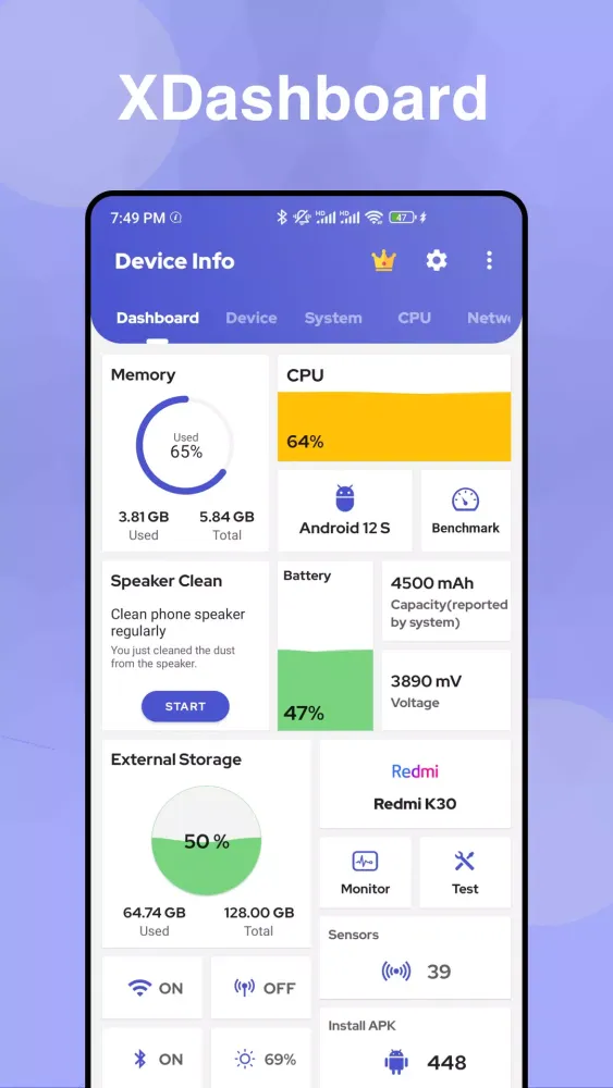 For those who prioritize performance, Dev Info delivers powerful tools to keep your device running at peak efficiency. The "Benchmark Mastery" feature includes rigorous testing of your screen, buttons, sensors, and hardware components, ensuring that your device remains healthy and responsive. Meanwhile, the "Hardware Insights" section delivers real-time data on sensors, battery health, CPU, and GPU status, empowering you to make informed decisions about your device’s maintenance.