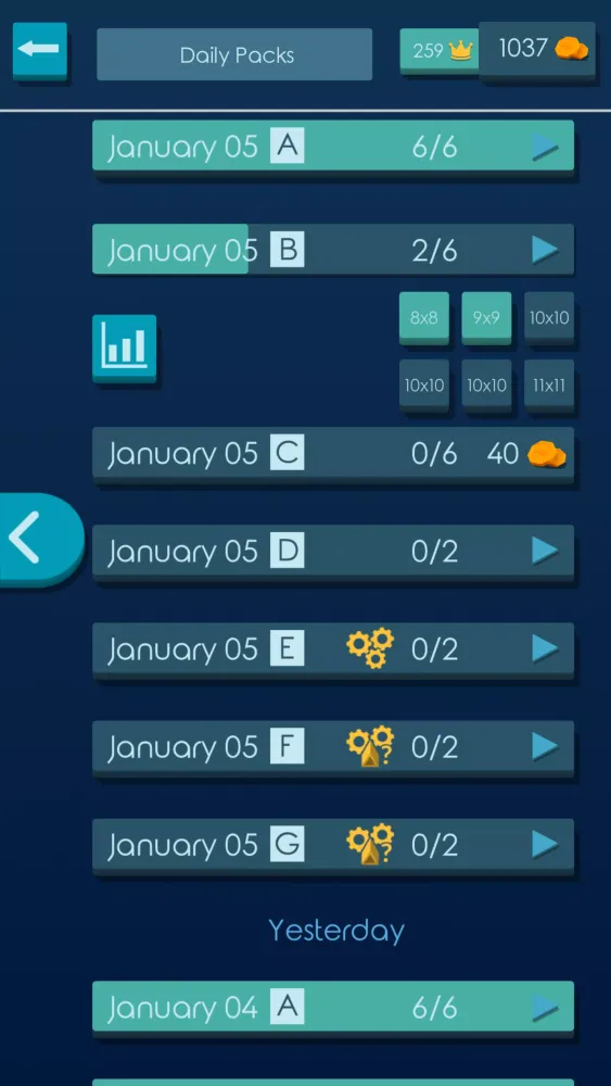 - Grid Sizes and Difficulty Levels: Progress through different grid sizes and incrementing levels of difficulty to enhance your problem-solving skills.