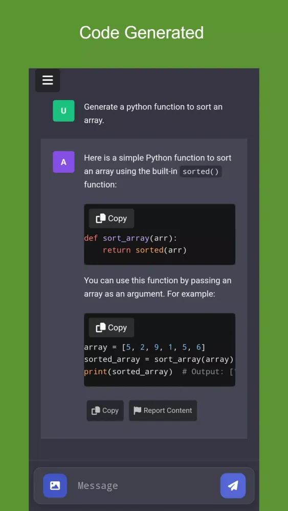 One of the standout features of "AI Code Generator" is its ability to support multiple programming languages and frameworks. From Python and JavaScript to Java and C++, the app caters to diverse preferences and projects. This versatility ensures that users can work seamlessly across different environments without switching tools constantly. Additionally, the user-friendly interface makes it accessible even for beginners, as any input prompt will trigger the generation of relevant code snippets that align perfectly with your specifications.