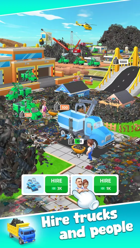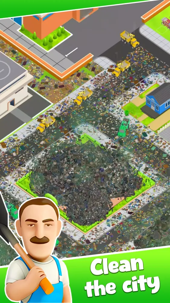 - Idle Gameplay: Sit back and relax as your town transforms under your management. Watch your trash collection empire grow effortlessly.