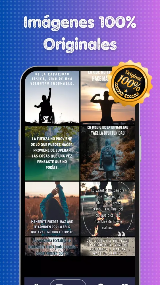 Are you in search of daily inspiration to fortify your inner self? 🌟 Look no further! The "Frases de Fortaleza Interior" (Phrases of Inner Strength) app is your perfect ally on the quest for personal growth and continuous motivation. Immerse yourself in a world brimming with potent words and stimulating visuals tailored to nourish your soul and invigorate your mind.