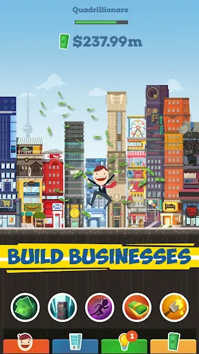 Tap to create money out of thin air and earn enough money to invest in your businesses. Shape your multi-industry conglomerate by building and upgrading your businesses. Don’t worry, we are living in the 35th century here. You will get to invest in some mind-boggling technologies such as the anti-gravity fork, luggage shrink ray, and the holographic window view!