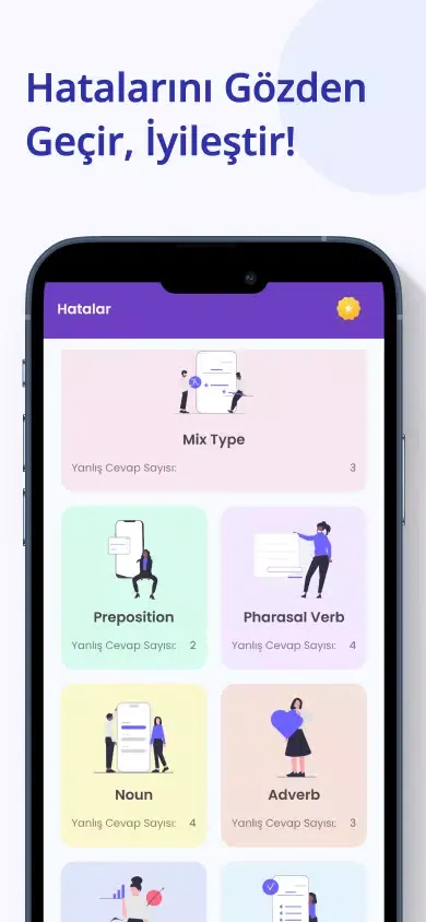 The app offers a vast library of words and phrases, covering over 850 valuable words, 500 prepositions, 200 phrasal verbs, 300 conjunctions, 560 adjectives, 210 adverbs, 600 nouns, and 300 conjunctions. This extensive word list is meticulously curated to help you succeed in your exams. Additionally, the app includes special categories to focus on specific areas where you might need extra practice.