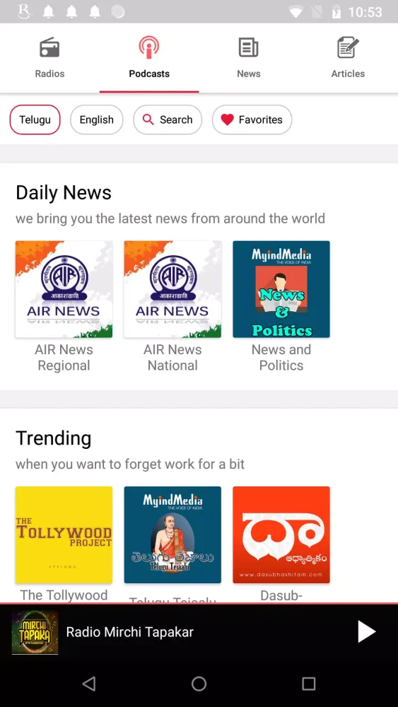 For those who enjoy engaging content beyond music, the Telugu FM Radios HD app also provides top Telugu Podcasts, including Daily Talks, Daily News, and even Jokes from around the world. Additionally, users can download podcasts for offline listening.