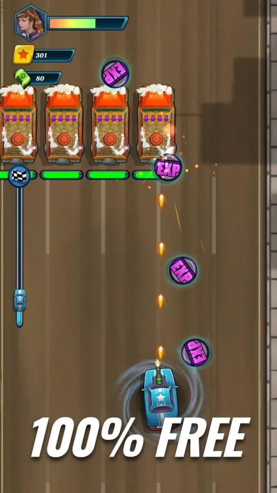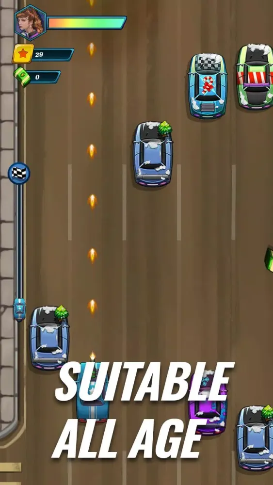 Control your vehicle by simply tapping the screen. Engage in high-speed collisions with opponents and shoot to eliminate targets, earning points along the way. Make sure to save as much experience and money as possible, which can be used to upgrade your weapons and vehicles. Finally, destroy the boss and upload your best scores to the Honor Board.