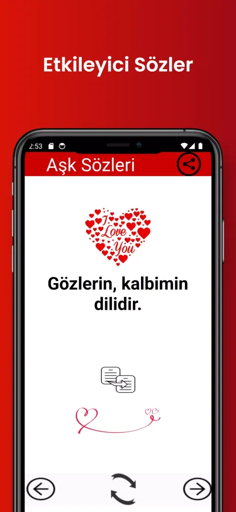 One of the standout features of "Etkileyici Aşk Sözleri" is its ability to inspire awe through impressive words. If you’ve ever dreamed of speaking in poetic terms or making your partner feel truly special, this app provides the tools to do so. The carefully selected quotes and expressions will elevate your words to new heights, ensuring that your sentiments leave a lasting impression. By embracing these words, you’ll not only impress your loved one but also deepen your bond by showing them just how much thought and care goes into your words.