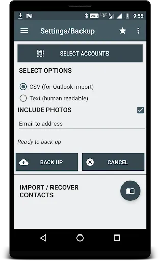 Contacts backup and Contacts transfer can store and saved as .vcf, .csv and .text for your future reference. In addition, these backup file can be shared via email as well.