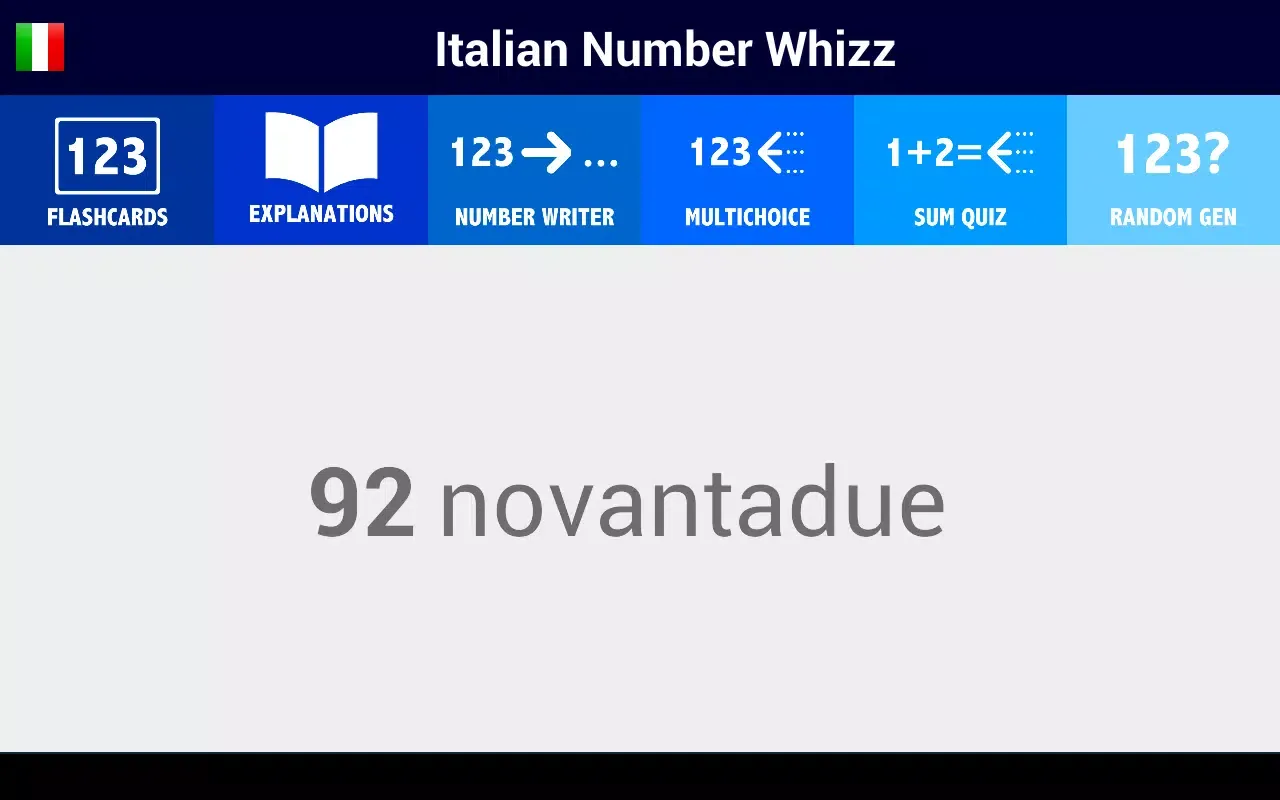 Whether you're a beginner or an advanced learner, Italian Number Whizz is designed to be an invaluable resource. It transforms the often monotonous task of learning numbers into an enjoyable and interactive experience, making it a fun way to enhance your Italian language skills.