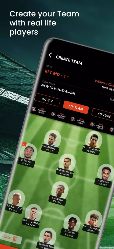 Download Real Fantasy Teams now and transform your football fantasy into reality. Join millions of fans in the ultimate test of football knowledge and prediction. The game is on – are you ready to play?