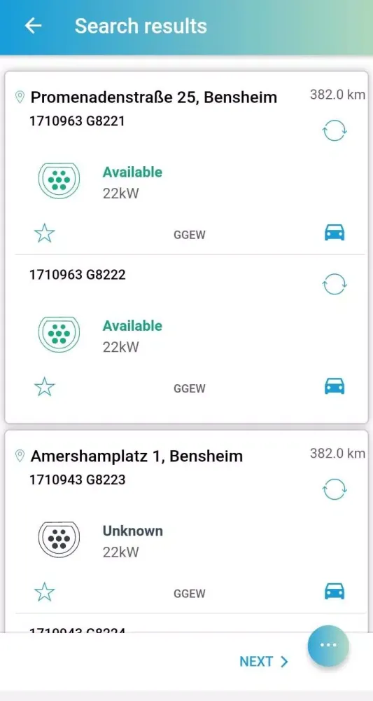 Advanced Search Options: Search for charging stations by city, zip code, or even by the specific charging station number. The app offers a detailed search list, providing an overview of all available charging stations in your vicinity.