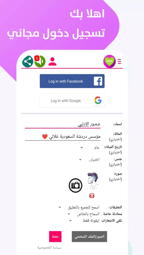 Personal Expression: Post your diary entries on your wall and share them with friends in the Saudi Ghalati chat community.