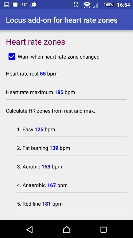 Locus add-on for heart rate zones