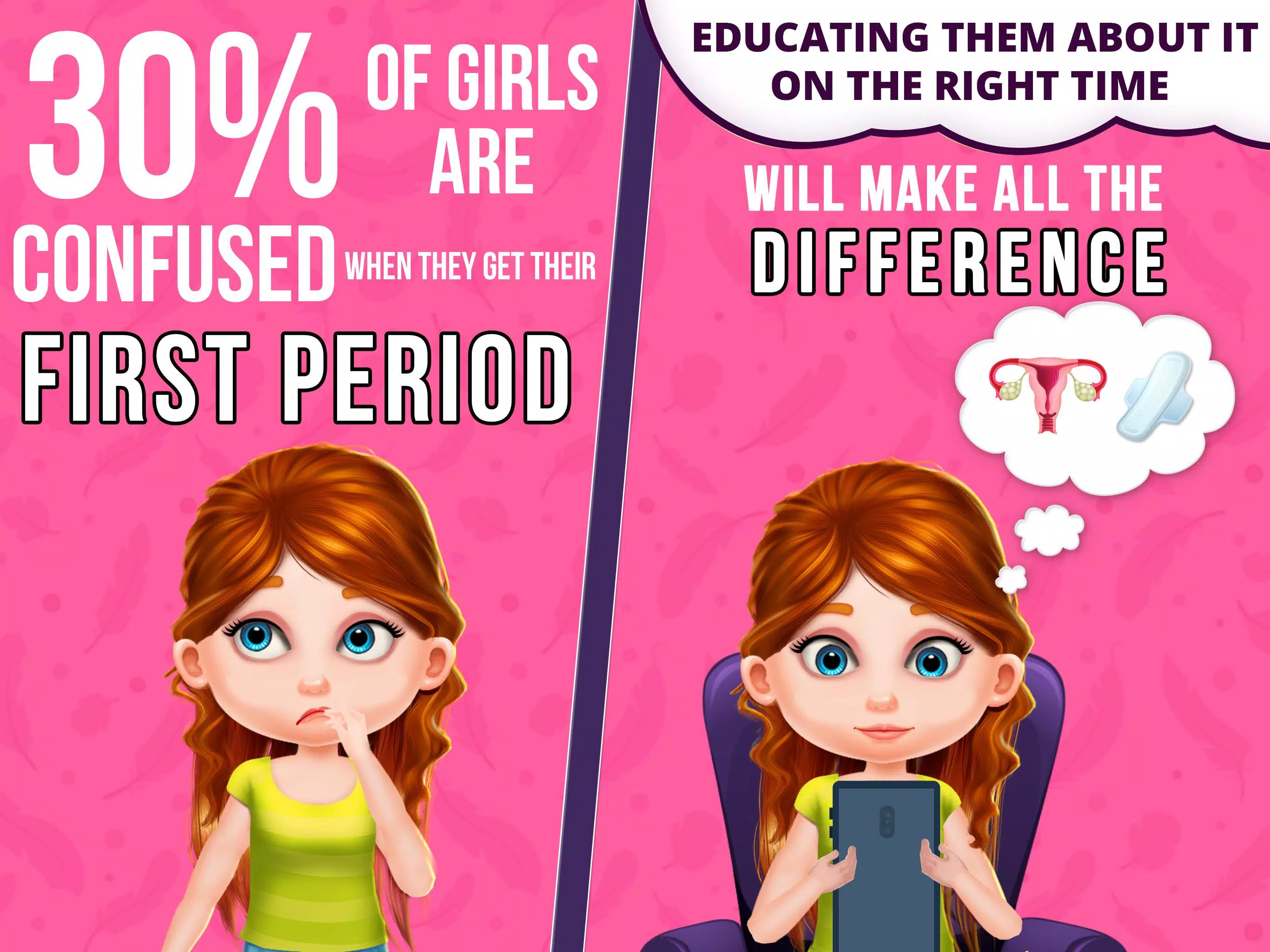 "Periods - Game for Girls" is an interactive and engaging application designed specifically for young girls who are beginning to understand the changes their bodies go through during puberty. This game serves as a valuable tool for parents and educators to introduce important topics such as menstrual cycles, body awareness, and personal hygiene in a fun and accessible way. The app is crafted to make learning about periods less intimidating and more exciting, helping girls feel empowered and informed as they grow.