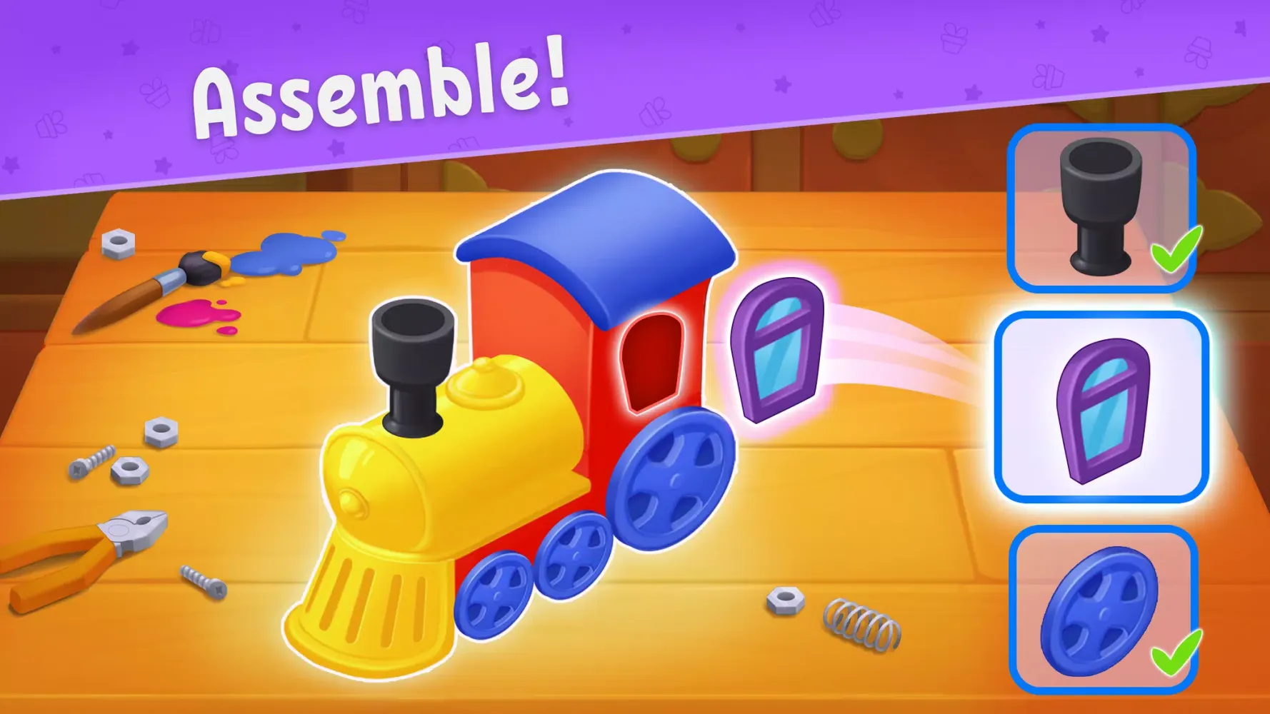 Welcome to "Toy Maker, Factory: Kids Games," an engaging and educational application designed to spark creativity and foster imagination in children. This app transforms the mundane into an exciting adventure where kids become skilled craftsmen in their very own toy workshop.