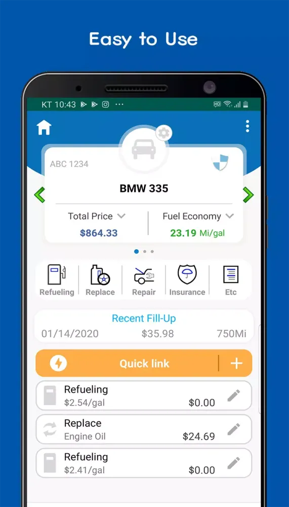 - Quick-Link Functionality: The "Quick-Link" feature allows for swift registration of vehicle spending data. This means you can log expenses like fuel, repairs, and maintenance with just a few clicks.