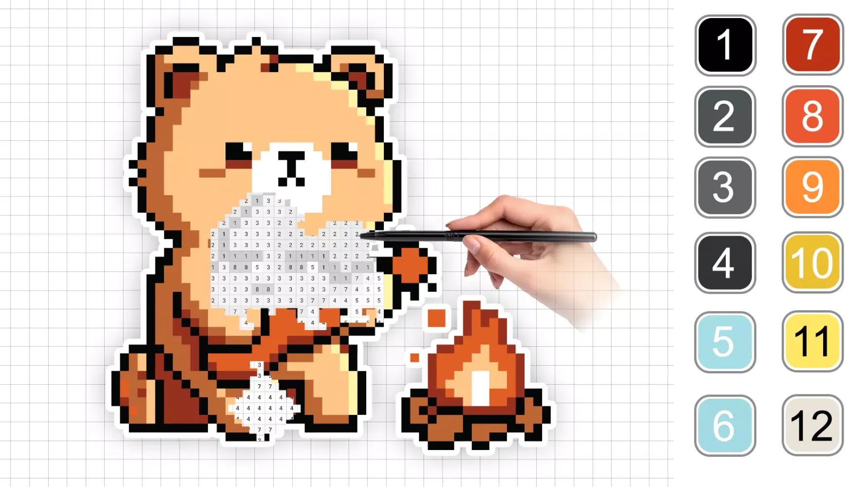Pixel By Number: Art Puzzle is completely free and easy to play. Simply zoom in using two fingers until the cells with numbers appear. Then, choose the appropriate colors from the palette and start filling in the cells one by one. Once you've painted the last number, your masterpiece is complete!