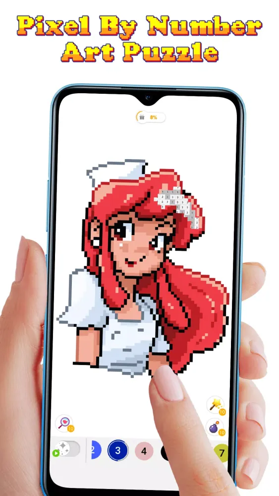 Pixel By Number: Art Puzzle offers a unique way to create stunning pixel art using numbers, pixels, and color blocks. The game is incredibly simple yet satisfying. All you need to do is pick the corresponding number and paint the picture. There's no need to worry about choosing colors or having any drawing skills—just let your creativity flow as you fill in each cell with the right color.