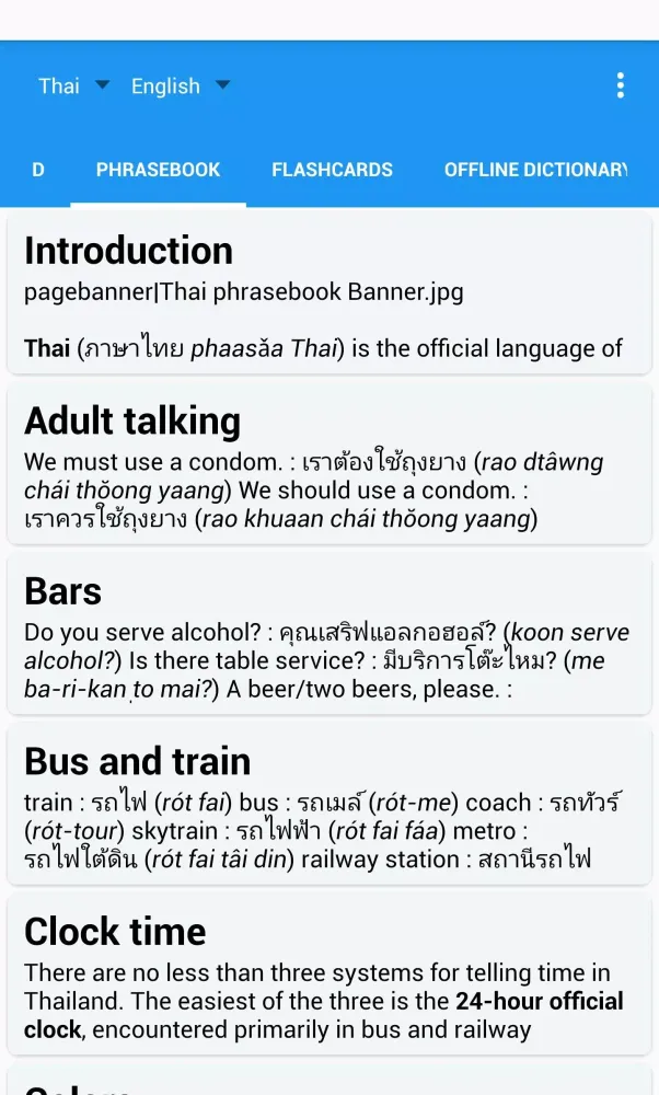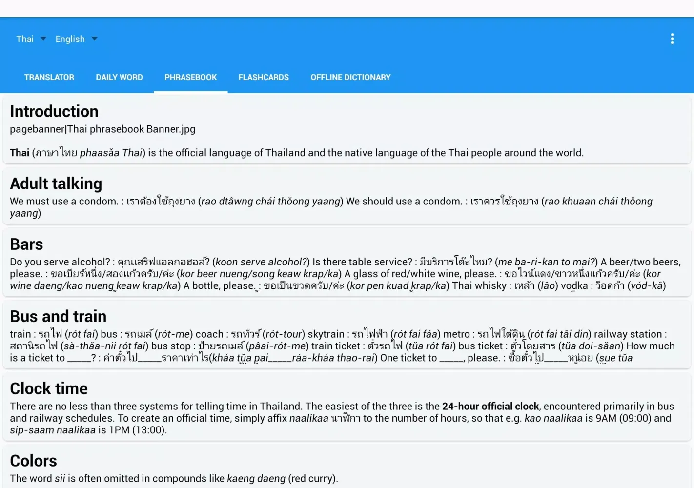 Comprehensive Dictionary: Dive into an extensive database of Thai vocabulary. With thousands of words and phrases at your fingertips, our dictionary is designed to aid in learning and comprehension. From daily conversational phrases to specialized business terms, you’ll find exactly what you need.