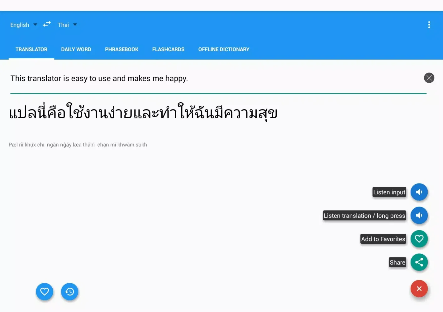 Unlock the beauty of the Thai language with the Talking Thai Translator/Dictionary app. Whether you are a traveler exploring the vibrant streets of Bangkok, a student learning the intricacies of Thai, or a business professional engaging with Thai partners, this app is designed to facilitate seamless communication and enhance your understanding of one of Southeast Asia's most fascinating languages.