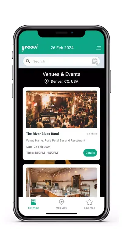 One of the standout features of Groovi is its ability to save your favorite events. By adding events to your favorites, you'll never miss out on the gigs and performances you love. This feature ensures you stay updated and can plan your schedule accordingly.