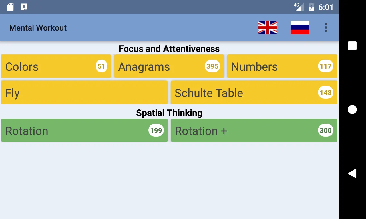 For now application contains 7 brain training games: