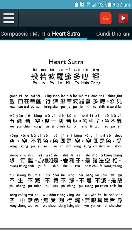 - Heart Sutra (Hsin Ching)
