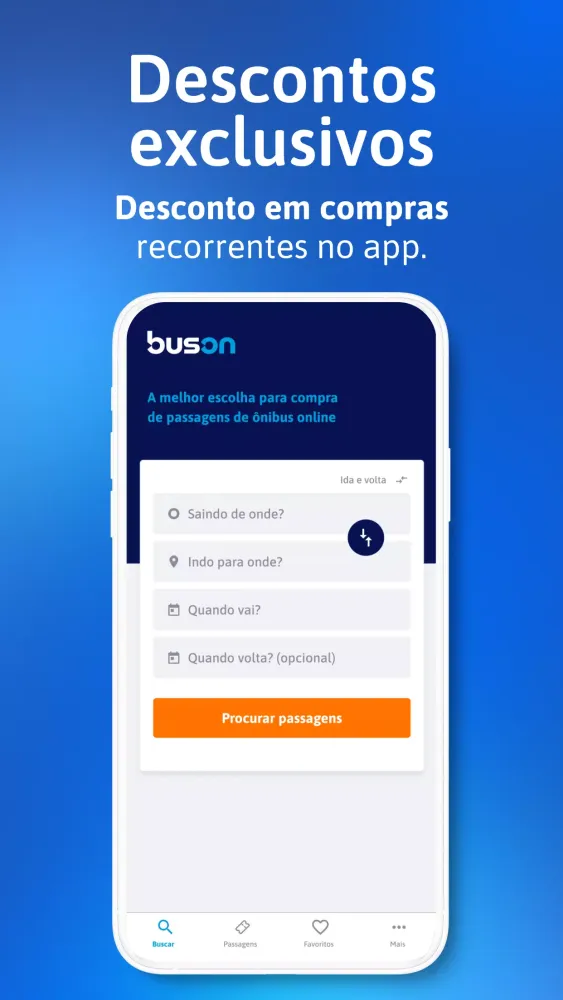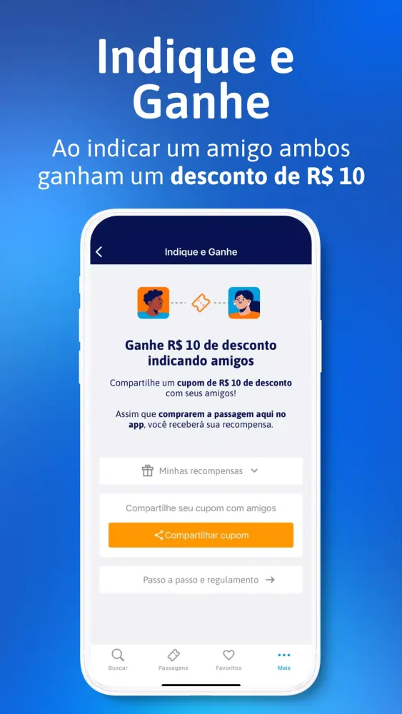 When you buy your first bus ticket using the Buson app, enjoy a 10% discount with the promo code APPBUSON. Additionally, participate in our Refer and Earn program by sharing your unique R$10 discount coupon with friends. Both you and your friend will benefit from the discount!