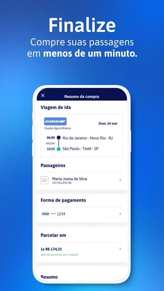 You can pay for your bus tickets using PIX or opt for up to 12 installments on your credit card. Plus, ticket cancellations are easy and completely free—all done directly through the app.